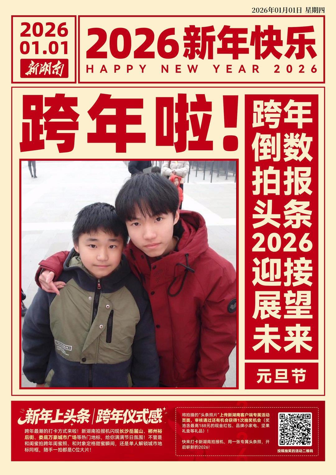 “咔嚓”一声,“开年首封,C位顶流闪现岳麓山”“新年上头条,2026就要‘顶峰相见’”“上‘顶峰’ 当‘顶流’ 开局即高光”等头版标题,和一张张笑脸一同被定格。