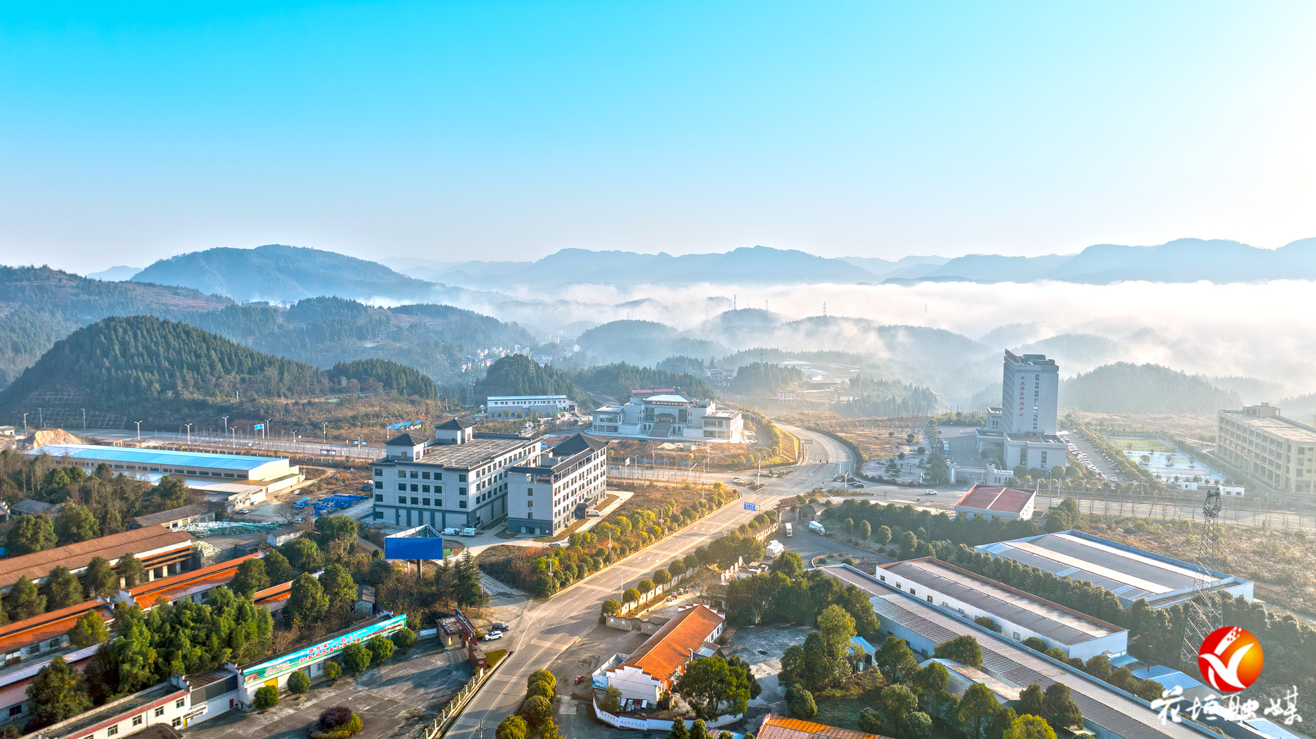 G65包茂高速、S10张花高速排楼枢纽与通村公路同框,展现不同层级道路的运输功能 宋显金摄