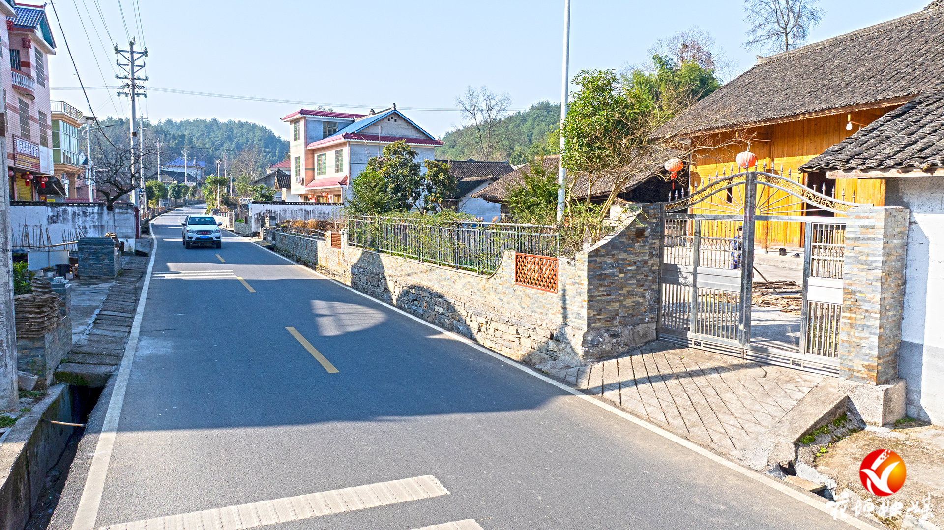 车辆行驶在修葺一新的S527线石栏镇朋岩村路段