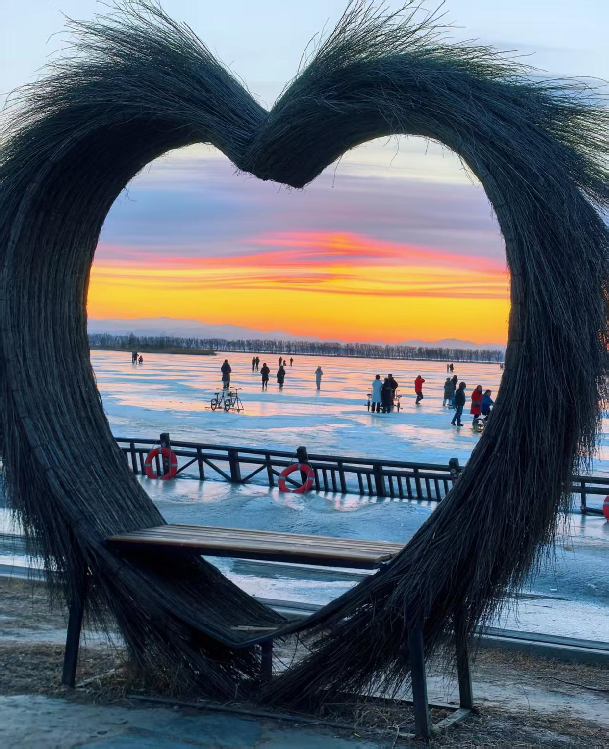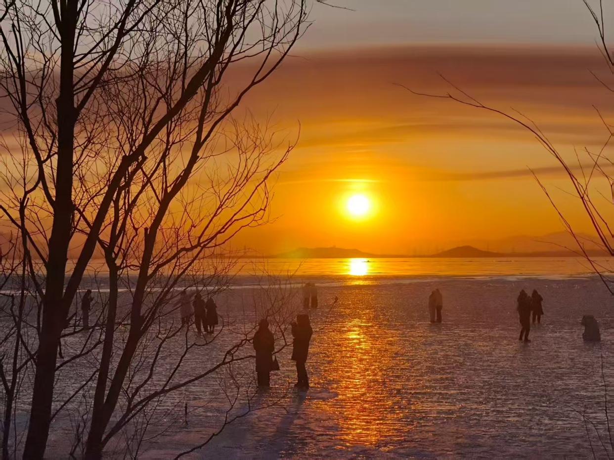 节日期间天气晴好,公园提示最佳拍摄时段为每日16时左右,夕阳西下“黄金光线”最美。核心机位位于园内栈道与芦苇丛交界处、湖西岸碎冰区。