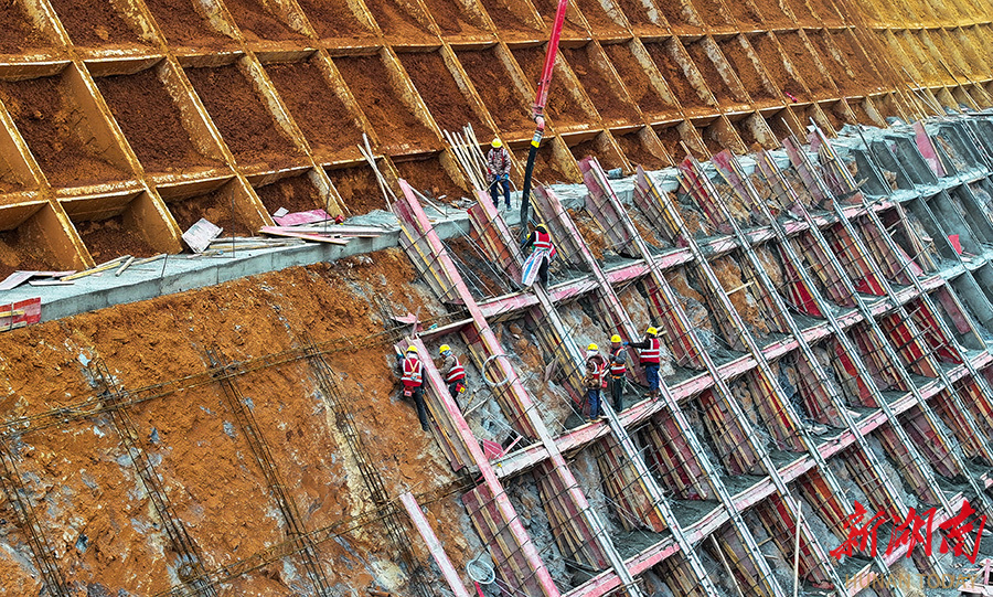 1月2日,新田县龙泉街道石甑源村,桂(东)新(田)高速建设工地,工人在进行防护坡施工作业。元旦假期,岳阳路桥的建设者们坚守岗位,抢抓工期,冲刺2026年底通车目标。 刘贵雄 陈祉凝 摄影报道(湖南图片库)
