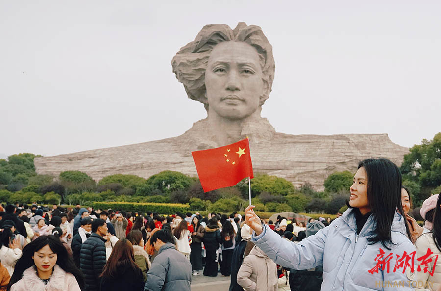 1月2日,市民、游客在长沙橘子洲景区参观游览。元旦假期第二天,各地游客齐聚青年毛泽东雕塑前打卡留念,尽享假日休闲时光。 湖南日报全媒体记者 徐行 摄
