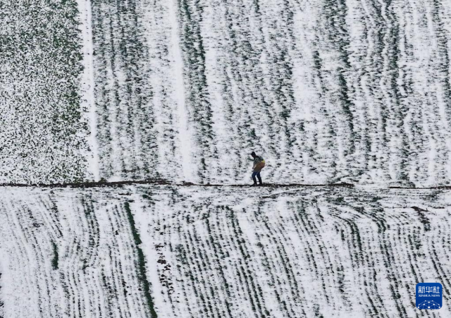 1月1日在湖北省襄阳市襄州区双沟镇刘大湾村拍摄的雪后麦地。