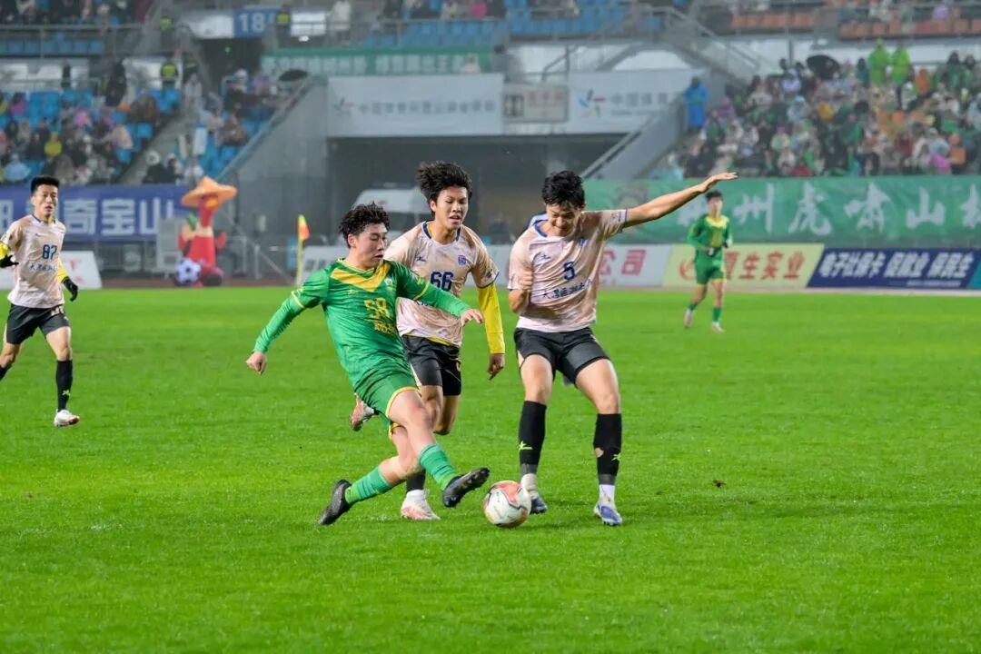 1月2日19:38,郴州市体育中心灯火璀璨,大湾区湖南人队与“湘超”劲旅郴州队的对决,拉开了新年跨省赛事的序幕。两支队伍火力全开、奋勇拼搏,抢断与反击轮番上演,边路突破、禁区攻门频频制造悬念,经过90分钟的激烈鏖战,最终两队以1:1的比分战平,握手言和。此刻,比分早已不是核心——赛前一句“大湾区湖南人,欢迎回家”的温情问候,赛中看台上“湘里乡亲 郴粤同心”的标语呼应,将绿茵场变成了乡情的聚集地。