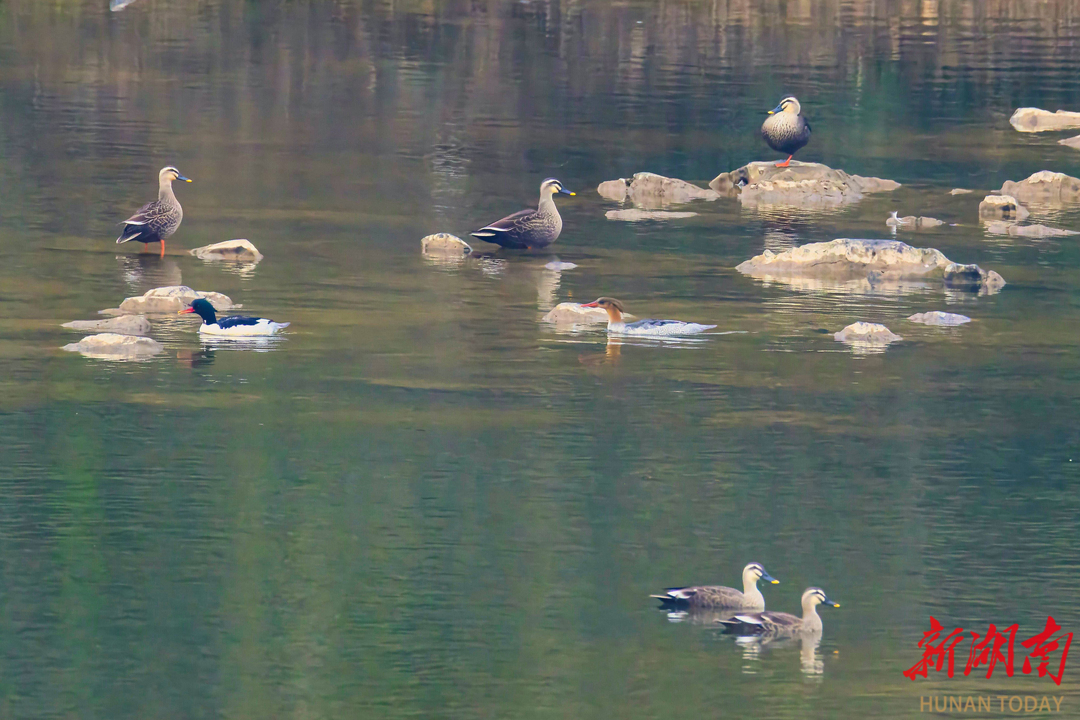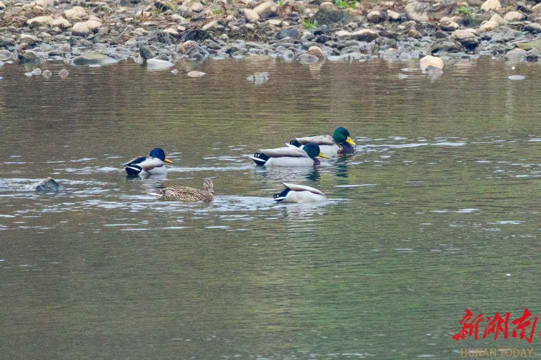 1月2日,平江县汉昌街道澄潭村汨罗江段,首次观测到国家三有保护野生动物绿头鸭与斑嘴鸭达150余只。此次在汨罗江观测到绿头鸭与斑嘴鸭前来越冬,充分印证了汨罗江流域近年来在生态保护与水质维持方面取得的切实成效。 湖南日报通讯员 胡望龙 记者 徐典波 摄影报道