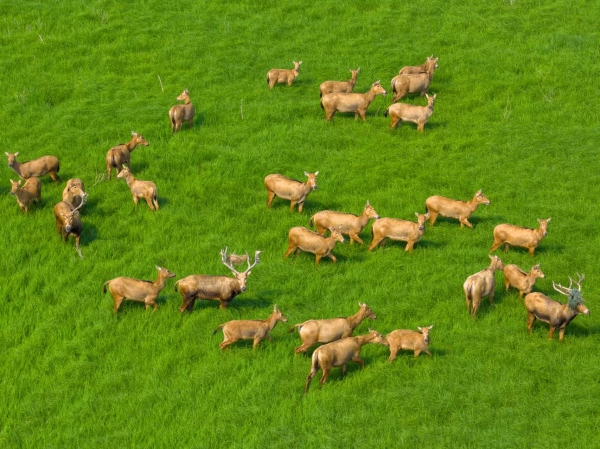 麋鹿的倩影,成为岳阳的四张名片之一。许泽波 摄