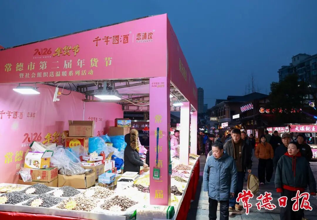 齐全的年货吸引众多市民游客元旦节当晚,“德山酒元旦之夜”专场活动以一场炽热的非遗表演,点燃了2026年的第一把“火”。惊险的火壶舞、绚烂的喷火技艺、灵动穿梭的鱼灯……这些传统技艺在夜幕下交织升腾,将红红火火、兴旺吉祥的美好祝愿,传递给现场的每一位游客。