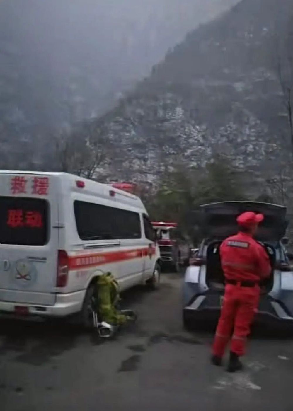 有男子不幸坠崖后,救援人员赶到事发现场(来源:受访者)