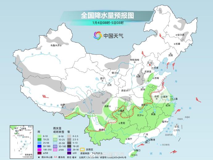 今天,降雪范围将明显收缩,云南、广西至长江中下游一带仍有大范围降雨,明天起雨雪天气继续缩减,主要出现在西南地区一带,其他大部地区将开启晴朗干燥模式。