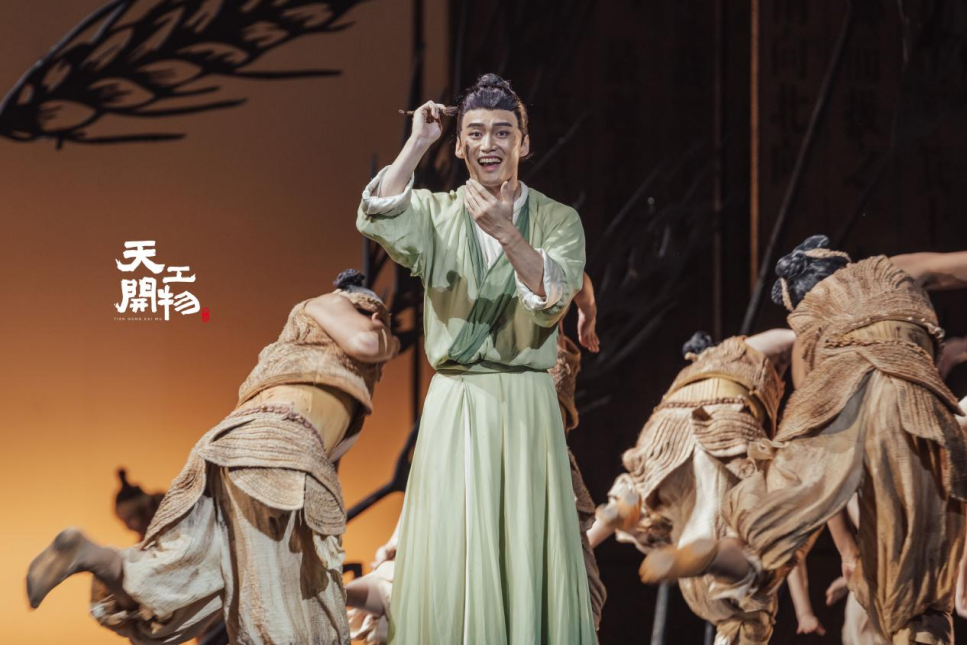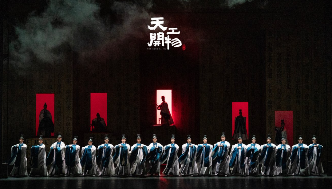 这部以明代科学家宋应星及其巨著《天工开物》为题材的舞剧,打破传统舞剧的叙事边界,通过“赶考”“著书”“山河”等篇章,串联起宋应星六次科考落榜后潜心钻研科技工艺的“硬核”人生。主创团队以舞蹈为载体,融合影像与现代科技,让被誉为“中国17世纪工艺百科全书”的古籍“活”起来,使观众得以沉浸式感受古代劳动人民的智慧结晶与宋应星的民族情怀。
