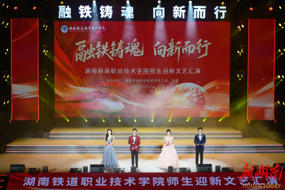 湖南日报1月4日讯(通讯员 黄刘婷 高源鸿)2025年12月31日,湖南铁道职业技术学院云龙西校区体育馆内灯光璀璨,由学校工会、团委联合承办的“融铁铸魂 向新而行”师生迎新文艺汇演温情启幕。1300余名师生欢聚一堂,共同见证湖南铁道职业技术学院与湖南铁路科技职业技术学院整合后的首个迎新盛会。此次文艺汇演既是展现学校办学底蕴、彰显融合发展成果的重要载体,也以“铁”字号特色文艺形式凝聚师生奋进共识,为冬日校园注入蓬勃生机。