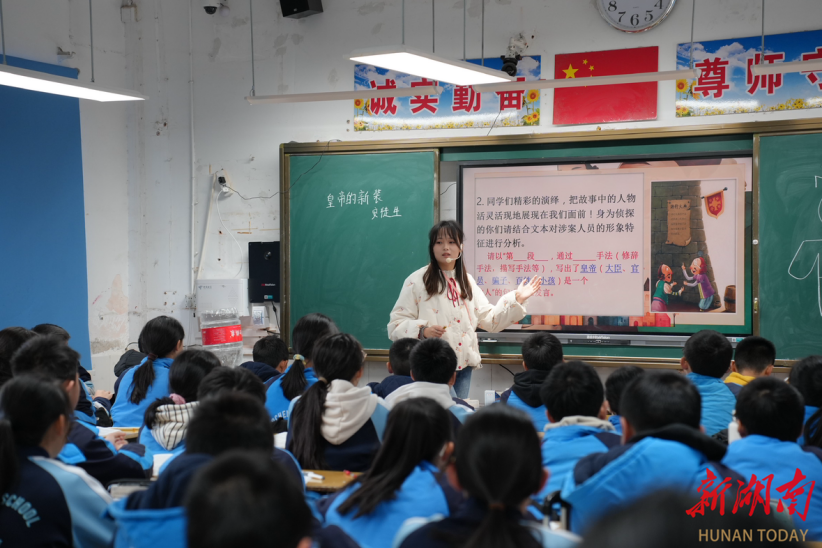 次日,团队赴汨罗市罗城学校观摩实习汇报课。3名实习学子充分展现扎实专业素养,通过“童话反诈”情境设计、趣味导入、家国情怀渗透等教学形式,实现人文思辨与价值引领的有机融合。评课环节,汨罗市杨青名师工作室首席名师杨青表示,湖南一师学子专业过硬、情怀深厚,认为这是红色基因与屈子精神共育的成果。向红引用屈原诗句鼓励学子坚守教育初心,并就板书规范、互动设计等细节提出优化建议。