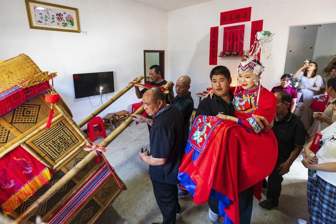 在浙江丽水拍《畲家喜事》。新娘上轿时,母亲站在人群中,嘴角带着笑,眼里却含着泪。丈夫早逝,她把女儿带大,这一刻的喜与不舍都静默地交织在她脸上。那个表情,我一直记得。