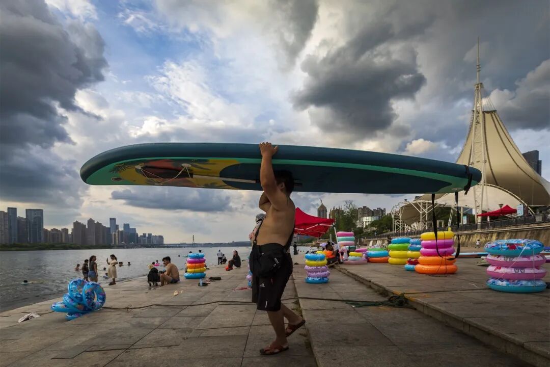 2025年10月2日,浙江丽水莲都:晨练的人们。