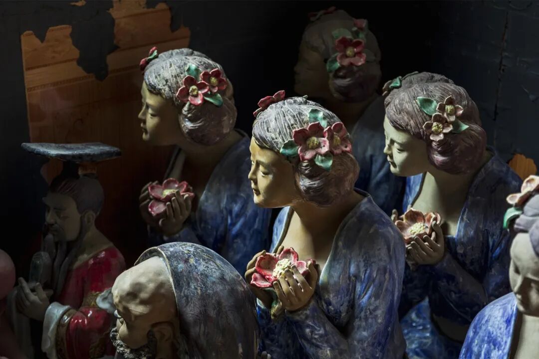 2025年7月6日,湖南望城:“泥人刘”的泥塑作品。