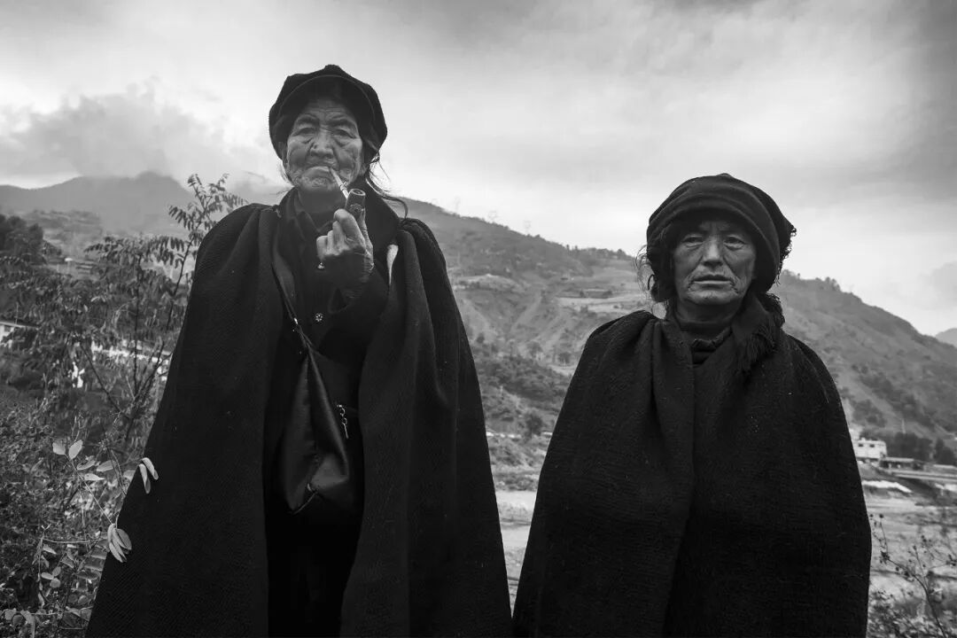 在大凉山拍身披“查尔瓦”的彝族同胞,平视镜头往往拍出的只是一张面容。但当我蹲下身,把镜头压低,人物便如山般矗立在远山之间,画面陡然有了重量。有时,把远山的云雾、村寨的日常带入构图,把人置于有深度的景中,平面的脸便立体起来——彝族同胞的坚韧与生命,才真正可触可感。