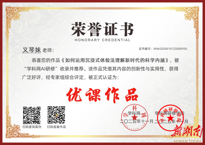 目前,21 件入选作品已全部在学科网平台正式上线,向全国思政教师开放共享,持续扩大永州市教研成果的辐射力与影响力。此次获奖既是对永州市高中政治彭国超名师工作室教研成果的权威认可,更是永州区域教研高质量发展的生动缩影。工作室将以此次荣誉为契机,进一步深化AI技术与思政教学的深度融合,加大优质成果推广力度,充分发挥名师工作室的示范引领作用,为思政育人事业筑牢根基、贡献永州力量。(邓东海)