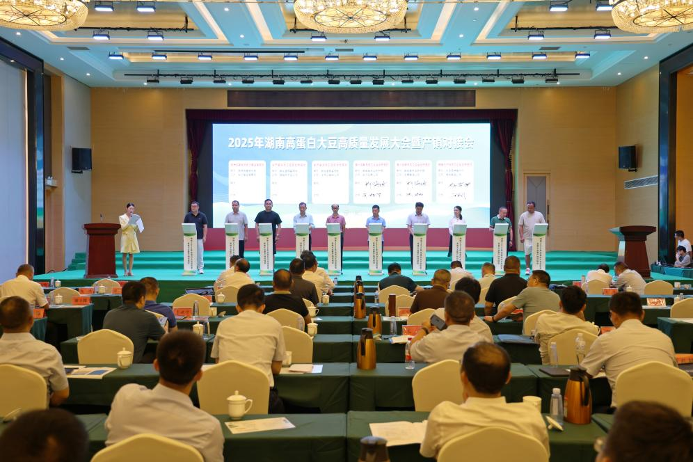 华容县注重构建有利于产业可持续发展的系统性支撑环境。一是强化科技服务团队。深化与省级科研院所合作,共建由湖南省农科院党委书记柏连阳院士为院长的湖南省农科院团洲垸现代农业研究院,强化品种与技术储备。同时,组建县乡两级技术指导组,开展全程跟踪服务。统筹利用各级财政资金,重点支持良种应用与关键技术推广,为产业发展注入持续动力。二是补齐加工冷链短板。以提升本地加工转化能力为突破口,推动产业向食品、保健品等高端领域延伸,提升产业抗风险能力与竞争力。三是打造区域公共品牌。通过举办高层级产销对接活动,吸引多方客商签约,显著提升了“华容高蛋白大豆”的市场知名度与影响力。