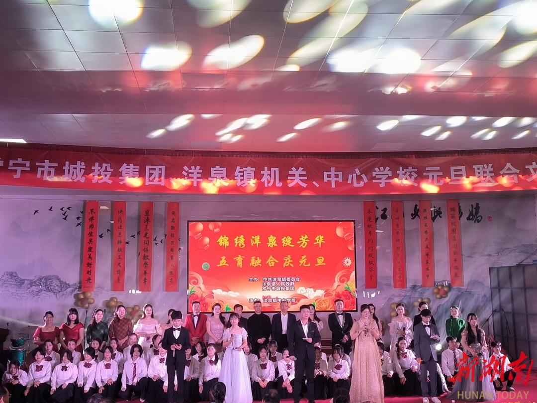 新湖南客户端1月4日讯(通讯员 彭玉辉)12月31日下午,常宁市洋泉镇中心学校礼堂内洋溢着欢声笑语,“锦绣洋泉绽芳华,五育融合庆元旦”元旦联合文艺汇演在此举行。