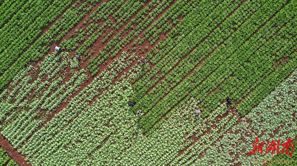 湖南金秋十月农业发展有限公司的蔬菜种植基地里,菜农们在收割芥菜。黄新 摄