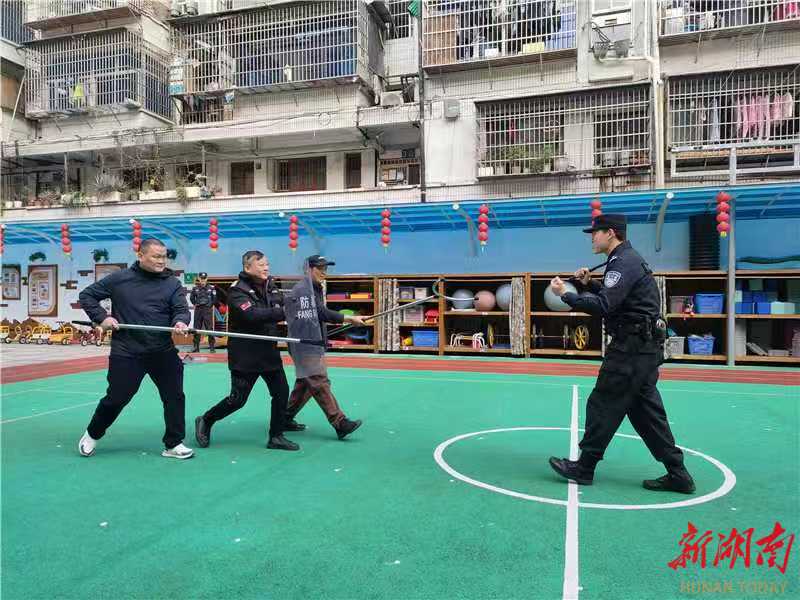 随后,特警队员将关注点转向校园安全“守护者”——幼儿园防暴队。针对防暴器械使用、突发情况应对等关键技能,特警队员通过“理论讲解+现场演示+实操指导”的方式展开培训。他们详细分解防暴盾牌的持握姿势、钢叉的攻防技巧,并组织防暴队成员进行模拟演练。
