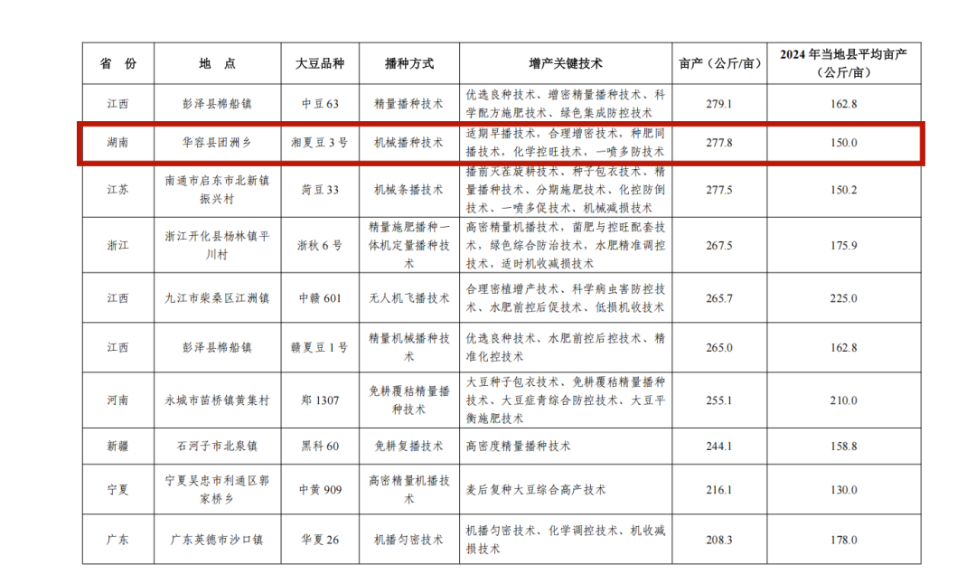 此次推介的典型案例显示,华容县团洲乡应用“湘夏豆3号”品种,集成机械播种、适期早播、合理增密、种肥同播、化学控旺及“一喷多防”等关键技术,实现实测亩产达277.8公斤,较常规模式产量大幅提升,凸显了技术集成对单产突破的关键作用。