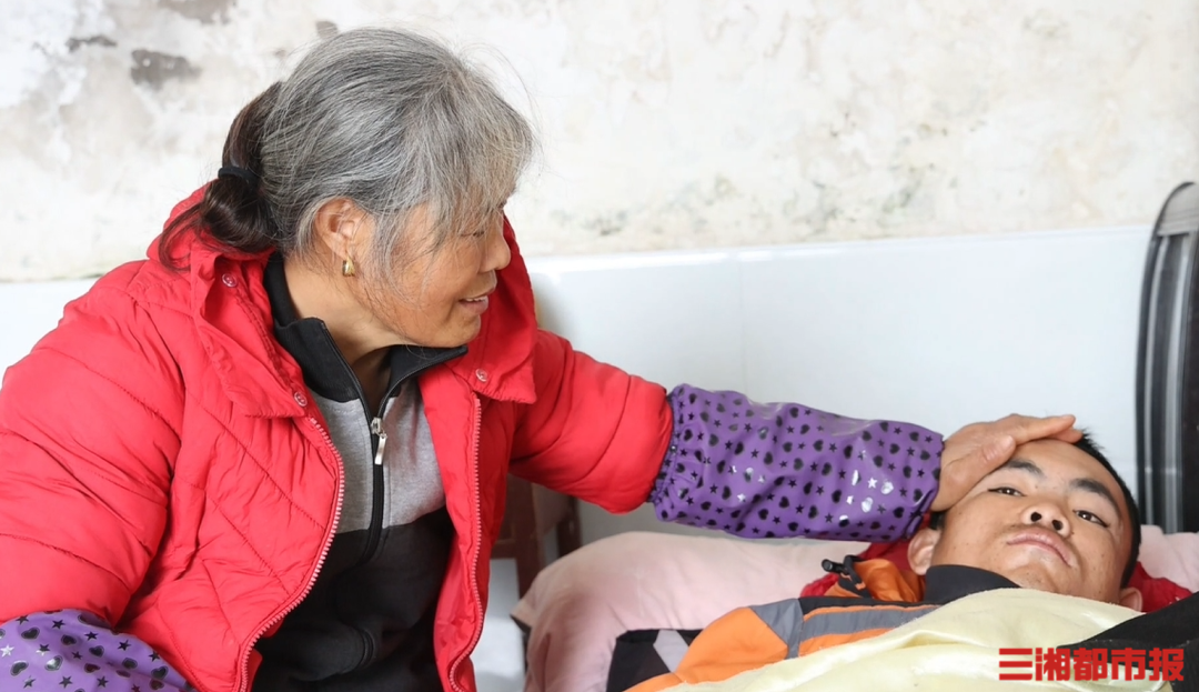 每天傍晚,她都会端来温水,用手腕细细试好温度,小心翼翼地为孩子擦洗;天气好时,陪着孩子坐在院子里晒太阳,说着田里的庄稼长势、村里的趣事;夜里,等孩子沉沉睡去,她还得坐在床边,为孩子轻轻揉腿。灯光下,那双因常年劳作而粗糙的手,此刻动作却格外轻柔。