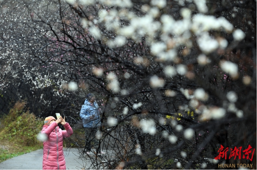 White and red plum blossoms have recently burst into bloom at the Plum Garden of the Hunan Academy of Agricultural Sciences in Changsha, filling the air with a delicate fragrance. Despite the recent temperature drops, early-season plum trees have begun to blossom in parks and scenic areas across the city, adding a gentle touch of warmth to the city in winter. (Photo/Tian Chao, Hunan Daily)