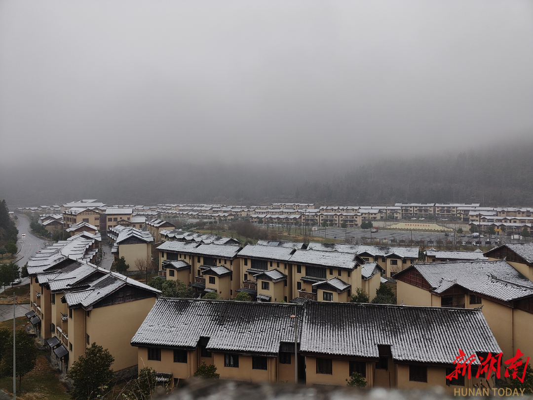 一场跨年初雪伴随着2026年的脚步如约而至,为湘西土家族苗族自治州凤凰县禾库镇安置区披上一袭圣洁银装。