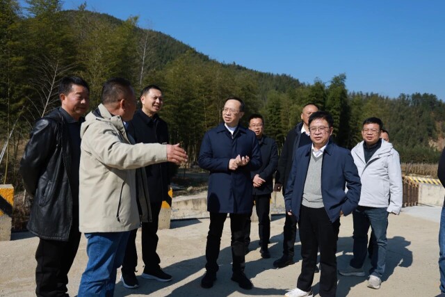 当天上午,谈文胜一行沿着崭新村道前行,先后查看了驻村工作队修建的匠心涵、民心路、连心桥及村部的重建情况,院党委委员、副院长全铁军,矿调所相关负责人参加。在匠心涵水渠旁,谈文胜查看排水是否通畅,询问防洪排涝保障能力,叮嘱要筑牢防汛“安全网”;在连心桥畔,得知这座桥不仅打通了灾后中断的交通,更拉近了邻里间的距离,予以高度评价。