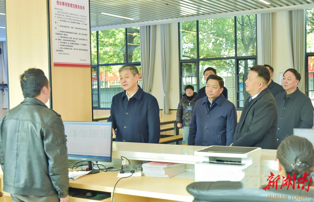 (严华在邵东仙槎桥镇了解基层治理工作。)