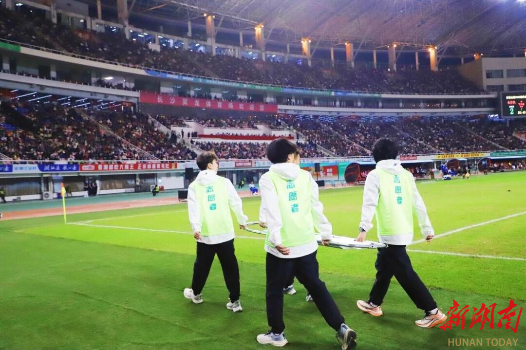 “看到球员安全离场得到有效救治,我悬着的心才敢放下”,在长沙主场对阵衡阳的比赛中,酣战之际一名球员摔倒在地,长沙商贸旅游职业技术学院学子方运与“急救先锋队”其他成员迅速行动、配合默契,成功将伤员安全转移,以专业应对护航赛事平稳运行。
