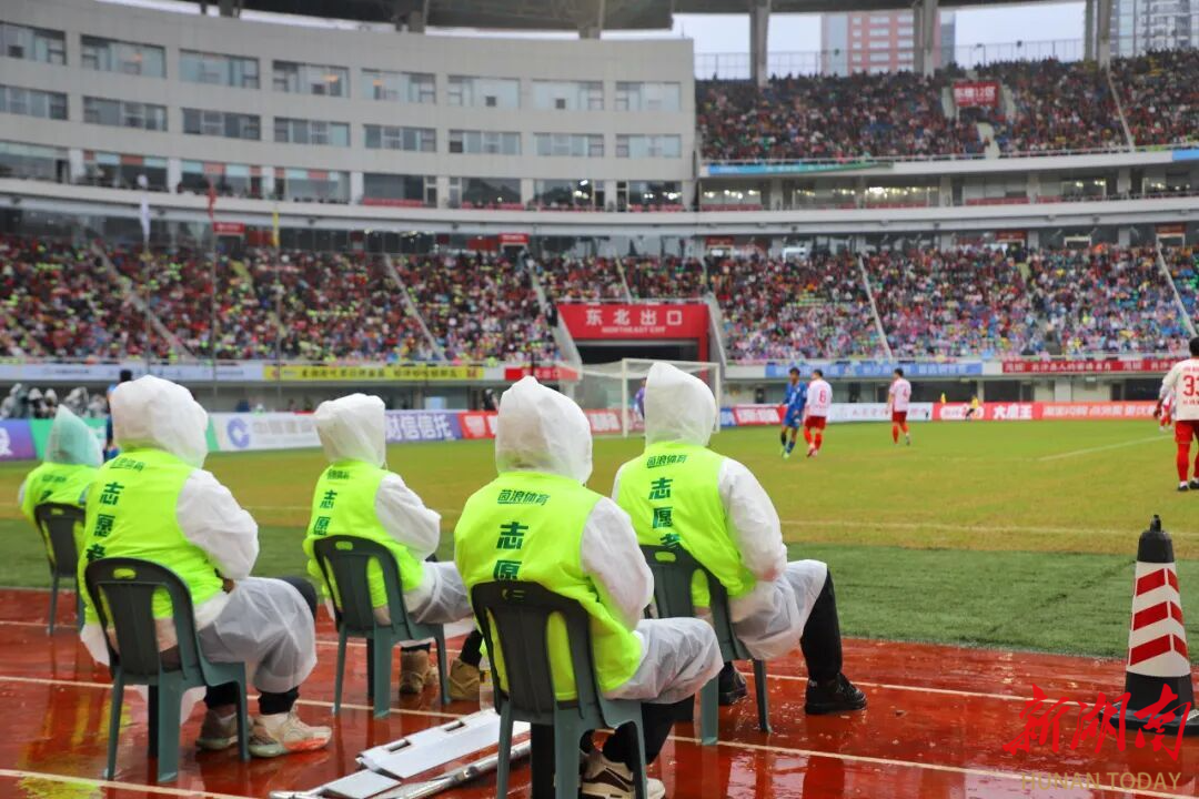 10月10日,联赛第五轮,57名志愿者第二次集结服务。11月8日,在长沙对阵岳阳的雨战中,33名志愿者化身“雨中守护者”护航湘超。耐心引导检票、指路,化身“行走的导航”;快速响应观众需求,维护现场秩序……据统计,整个赛季该校湘超志愿活动海选10次,2700余名学子踊跃报名,近530名志愿者抵达赛场,投身服务。