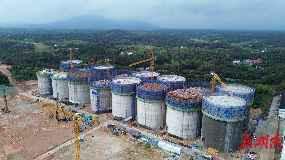 在开慧镇,开慧粮食仓储扩建项目的16个浅圆仓巍然矗立。项目预计2026年4月竣工,建成后该库点总仓容规模将跃升至33万吨,为端稳“中国饭碗”贡献星沙力量。