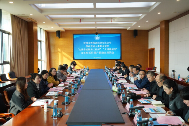 湖南日报1月7日讯(通讯员 侯俊)2026年1月6日上午,湖南劳动人事职业学院与宏瑞文博集团股份有限公司在学院视频会议室举行“文博售后服务工程师”“文博讲解员”订单班签约仪式暨产教融合座谈会。学院党委副书记、院长钟秋明,宏瑞文博集团董事长徐武洪等校企双方代表共同出席,围绕深化人才培养合作、创新产教融合模式、共育文博行业高素质人才等议题展开深入交流,达成广泛共识。
