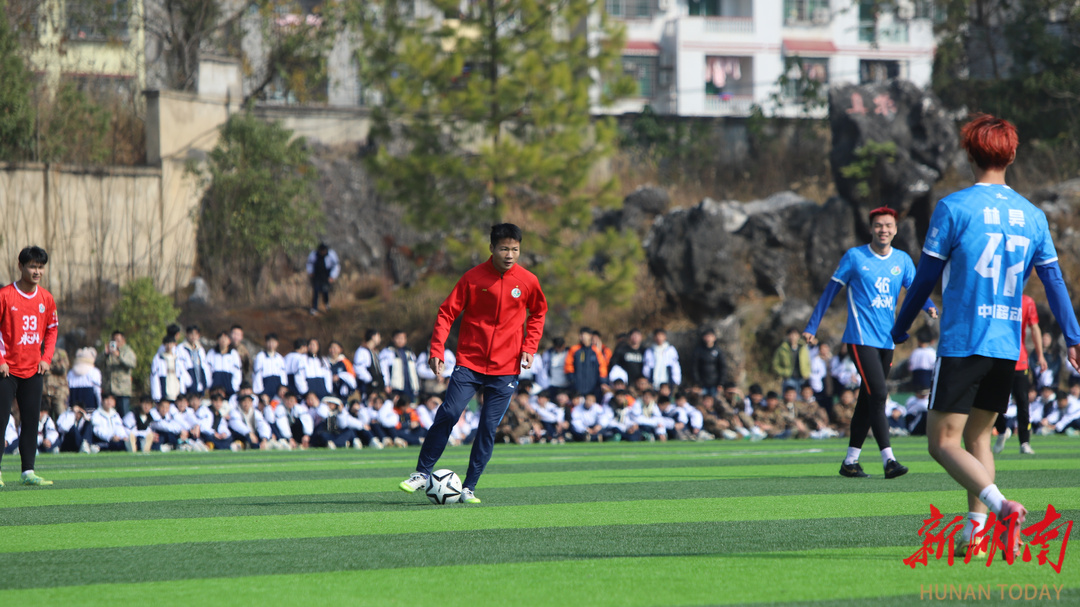 湖南日报·新湖南客户端1月8日讯(通讯员 汪洋 高志恒)1月6日,祁阳陶铸中学,“我与湘超冠军踢足球”活动启幕,数千名师生、全市12支足球学校代表队及社会各界人士,与湘超冠军队9名健儿共赴一场以足球为媒的青春之约。