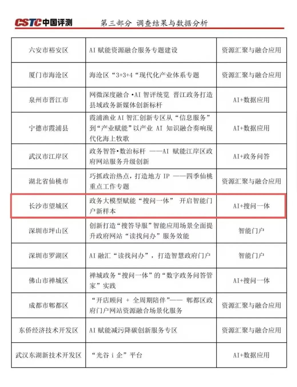 中国信息化研究与促进网发布《2025年中国优秀政务平台(数字政府)推荐及综合影响力评估结果通报》,此为《通报》截图。《望城区政务大模型赋能“搜问一体”开启智能门户新样本》荣获2025年数字政府服务能力评估暨第二十四届政府网站创新发展评估优秀创新案例。