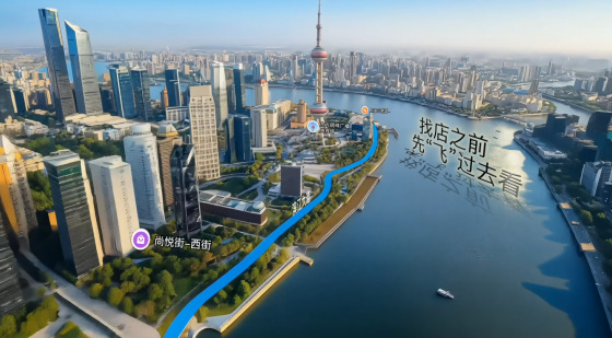 据介绍,飞行街景依托高德自研的世界模型,通过高拟真数字还原,实现连续、动态、与现实几乎一致的实景导航和实景探店,帮助用户到餐厅、景点前即可沉浸式俯瞰内外部实景,“实地”体验沿途风景、停车位、餐厅包厢环境等。