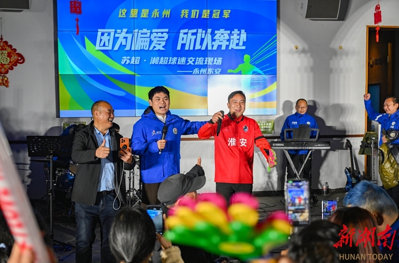 1月8日晚,东安县聚德生态文化园,来自江苏的球迷与永州球迷联欢。当天,苏超·湘超球迷交流活动走进永州市东安县,与本地球迷齐聚一堂,体验当地深厚的传统文化与民俗风情,实现“以赛促融、以文会友”的深层次交流。湖南日报全媒体记者 郭立亮 通讯员 蔡小平 摄影报道