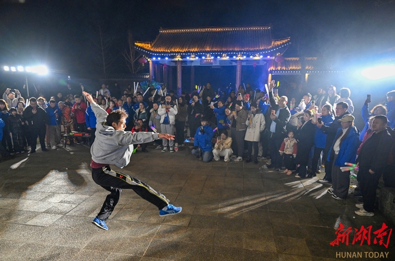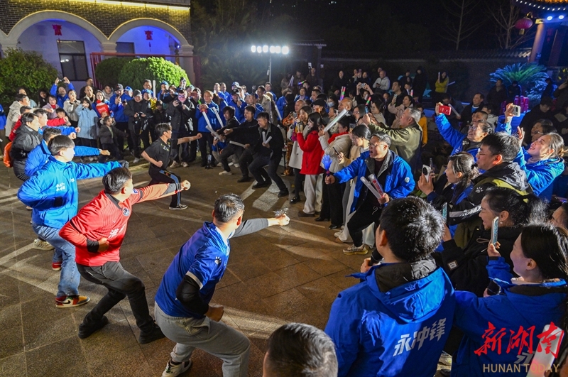 1月8日晚,东安县聚德生态文化园,来自江苏的球迷与永州球迷在体验东安武术。当天,苏超·湘超球迷交流活动走进永州市东安县,与本地球迷齐聚一堂,体验当地深厚的传统文化与民俗风情,实现“以赛促融、以文会友”的深层次交流。湖南日报全媒体记者 郭立亮 通讯员 蔡小平 摄影报道