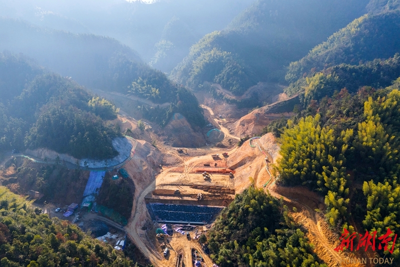 1月8日,双峰县花门镇黄山村,金子冲水库枢纽工程项目建设如火如荼。该项目总投资5342.36万元,建成后将形成81万立方米库容,显著提升区域灌溉能力和生态效益。 李建新 李尧池 摄影报道(湖南图片库)
