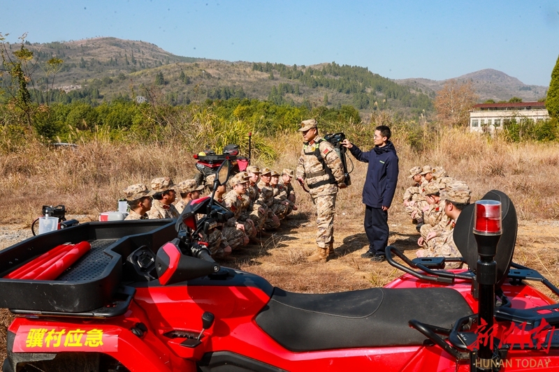 1月8日,新田县骥村镇胡家村,中联重科技术人员指导森林灭火无人支援分队队员操作单兵背负式喷射装备。新年伊始,新田县人武部开展2026年度基干民兵森林防火集训活动,通过战备拉动、新域新质装备使用、森林防火演练等科目训练,充分利用现代科技装备,构建“人防+技防”森林防护体系,全面提升民兵队伍的应急救援综合能力。刘贵雄 郑兰萍 摄影报道(湖南图片库)