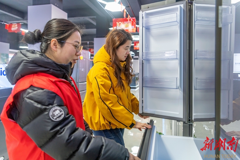 1月8日,东安县舜皇城一家电器超市,市民在选购家用电器。新年伊始,该县通过政府引导、部门搭台、商家让利,实行“国补+店补”双重优惠,持续推进消费品“以旧换新”政策落地落实,进一步激发消费市场活力。蔡小平 摄(湖南图片库)
