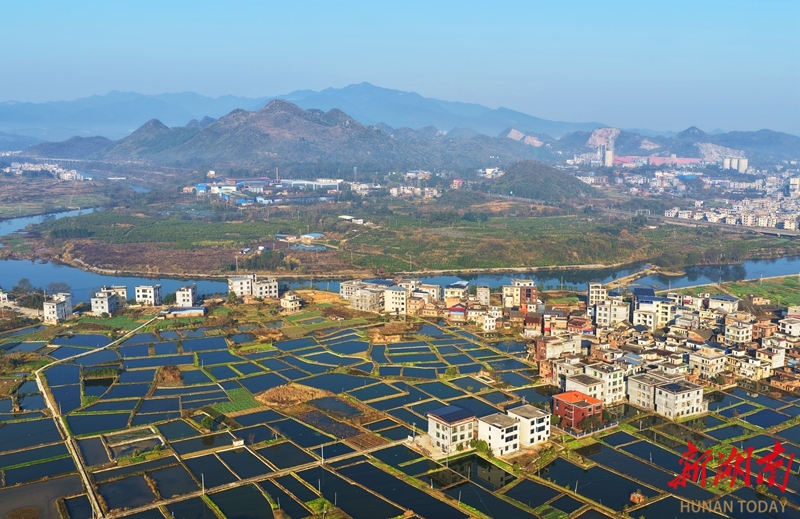 1月8日,嘉禾县珠泉镇井涵村,鱼塘星罗棋布,与民居、河流、公路交相辉映,形成了一幅产业兴、生态美、百姓富的乡村振兴新图景。近年来,当地依托丰富的水资源优势,大力发展生态渔业养殖,带动村民增收。黄春涛 摄(湖南图片库)