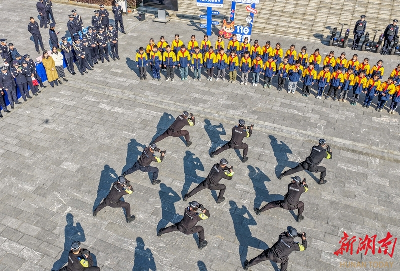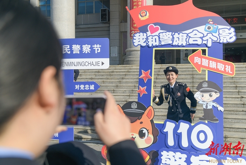 1月8日,道县公安局举行警营开放日活动,民警在打卡留影。当天,道县公安局开展升警旗仪式、重温入警誓词以及形式多样的警营开放日活动,迎接第六个中国人民警察节。蒋克青 刘晓玲 摄影报道(湖南图片库)