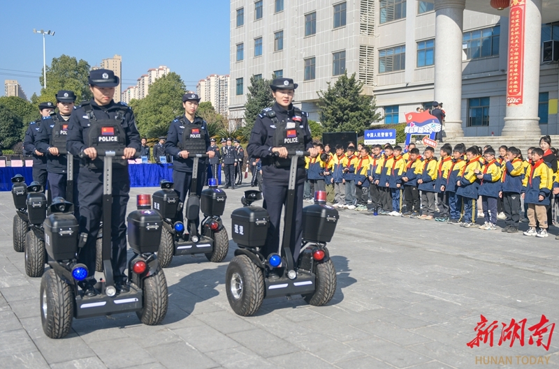 1月8日,道县公安局举行警营开放日活动,警务人员为学生展示警务装备。当天,道县公安局开展升警旗仪式、重温入警誓词以及形式多样的警营开放日活动,迎接第六个中国人民警察节。蒋克青 刘晓玲 摄影报道(湖南图片库)