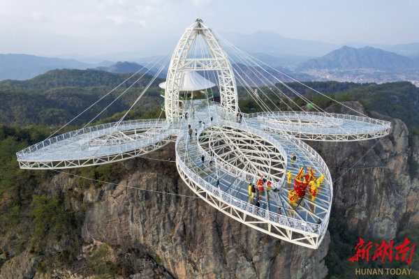“赛场的坚韧与山水的奇绝相映成趣。”景区负责人介绍,石牛寨的壮阔风光恰是永州队拼搏精神的生动写照——300米跨度的全透明高空玻璃桥,宛如云端漫步的刺激体验恰似夺冠时刻的万丈豪情;三叶草玻璃观景平台“悬崖天眼”,360°俯瞰丹霞全景,实现“一脚跨三省”的壮阔视野;依附崖壁的悬崖飞拉达攀岩,让游客在挑战中释放热血激情;260米垂直落差的云中天梯与300米高空的天空之镜,则为热血之旅添上浪漫底色。景区内20余项网红体验项目,涵盖冒险挑战与慢游赏景等多种类型,满足不同游客需求。