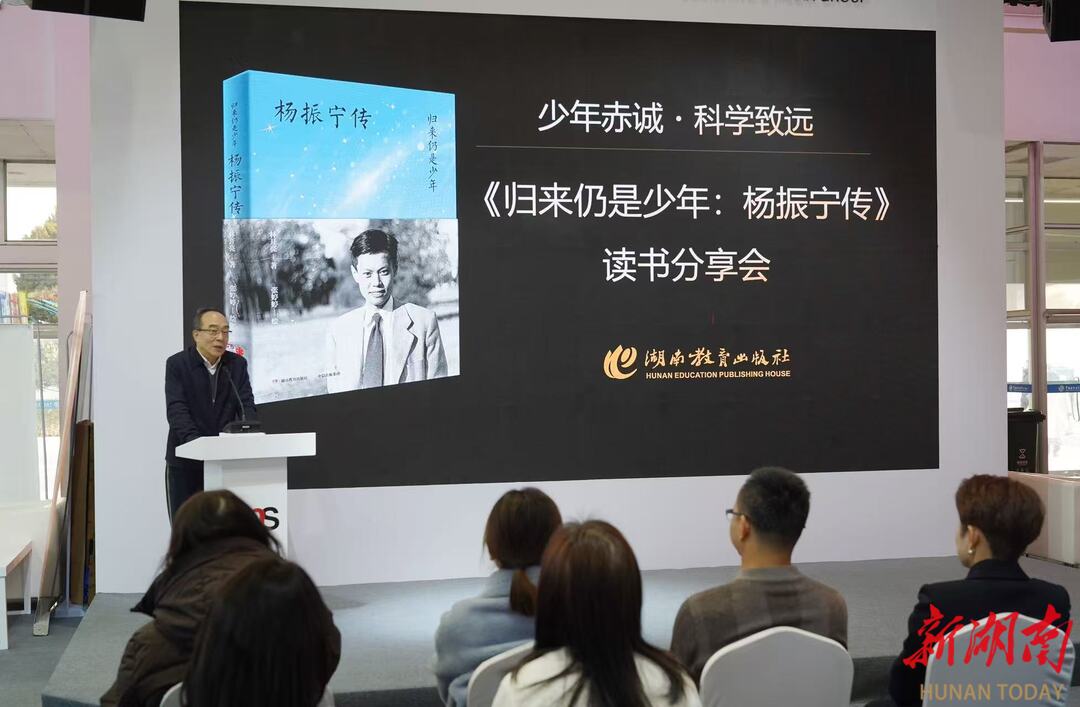 湖南日报·新湖南客户端1月9日讯(记者 黄煌 通讯员 谭璇 摄影 徐行)1月9日,由湖南教育出版社主办的“少年赤诚·科学致远”《归来仍是少年:杨振宁传》读书分享会在2026北京图书订货会湖南出版展区举行。分享会聚焦于科学巨擘杨振宁的人生历程与精神世界展开深度对话,引发现场不少读者关注与共鸣。