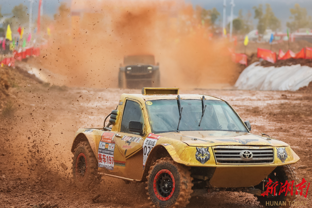 1月10日,2026永州・蓝山皮具箱包杯越野汽车场地赛在蓝山县湘江源国际皮具城越野基地激情开赛,来自全国各地的130余名越野爱好者和专业车手齐聚蓝山同场竞技,为观众带来一场“速度与激情”的视觉盛宴。(湖南日报·新湖南客户端通讯员 彭华 摄影报道)