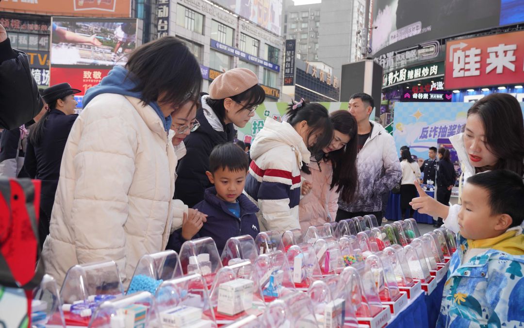 “转盘转起来,防毒知识点亮!”“飞行棋闯关,禁毒知识记牢!”1月10日上午,长沙市天心区黄兴路步行街中心广场热闹非凡,第六个中国人民警察节暨第40个110宣传日启动仪式上,众多民警齐聚一堂。其中,禁毒互动区凭借一系列“好玩又有料”的体验项目,吸引了大量市民游客前来互动打卡,在一片欢声笑语中沉浸式传播毒品预防知识。